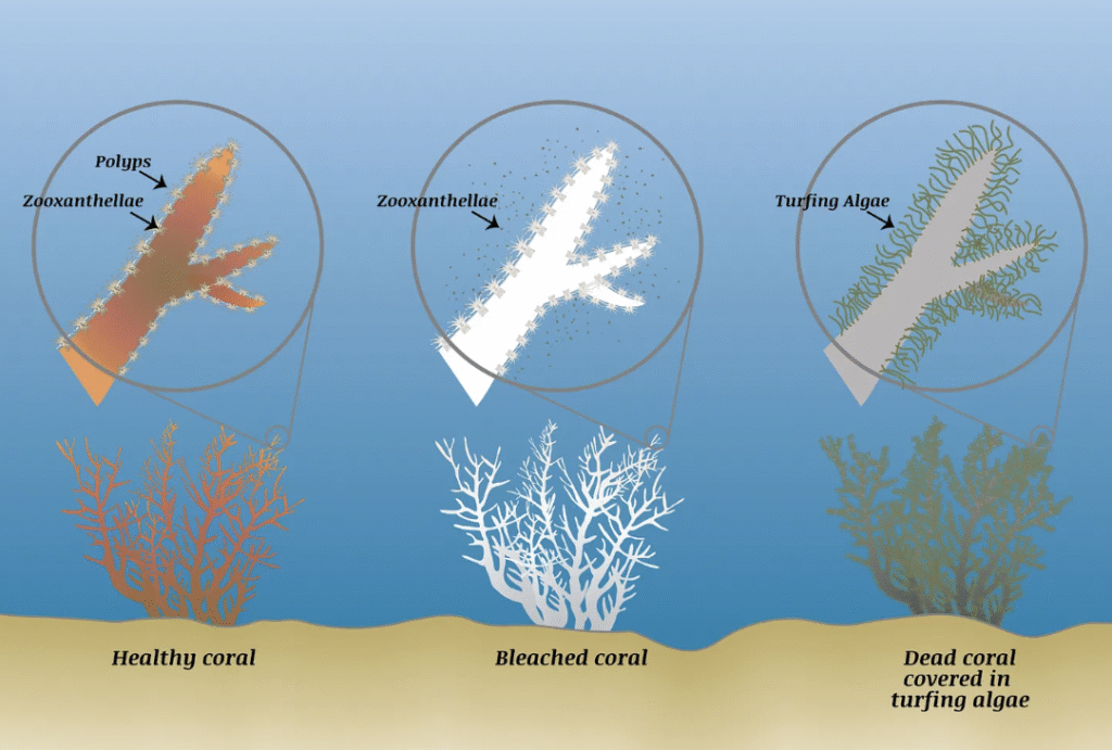 Coral Bleaching might be a term you have heard. Yes, it is exactly what it sounds like, as coral bleaching is when corals begin to lose their color and are left looking pale and lifeless. Many credit coral bleaching simply to the rising temperatures, and while global warming is a main facet, there are many more. To put it officially, the National Library of Medicine says coral bleaching “represents the breakdown of a long co-evolutionary relationship between the coral host and its photosynthetic symbionts.” This may have just sounded like a whole lot of nothing, but trust me, after reading this article, you will understand!